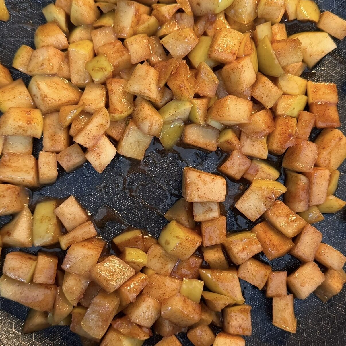 1. Heat butter in a small pan over medium heat. Add diced apples, apple pie spice, lemon juice, and sugar.