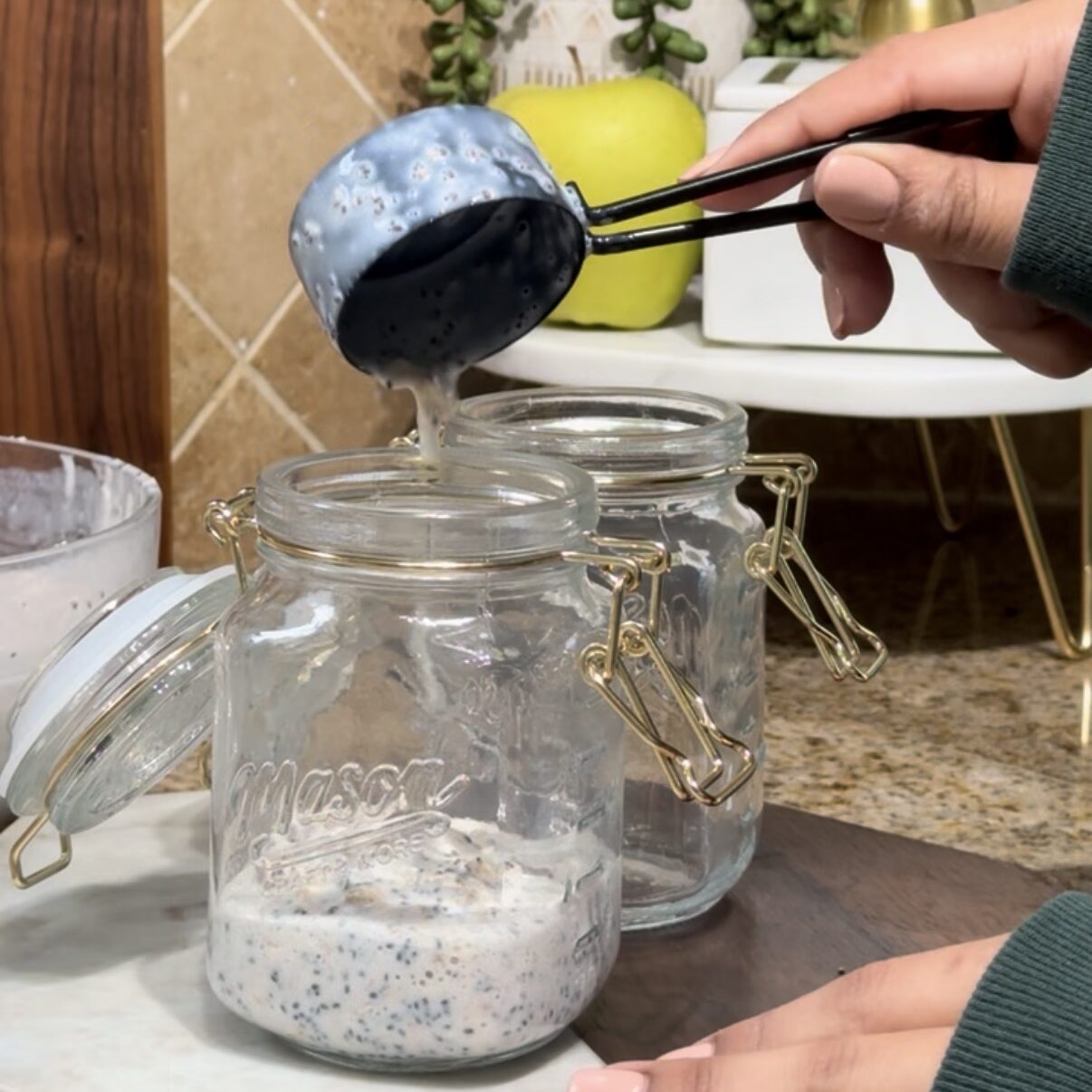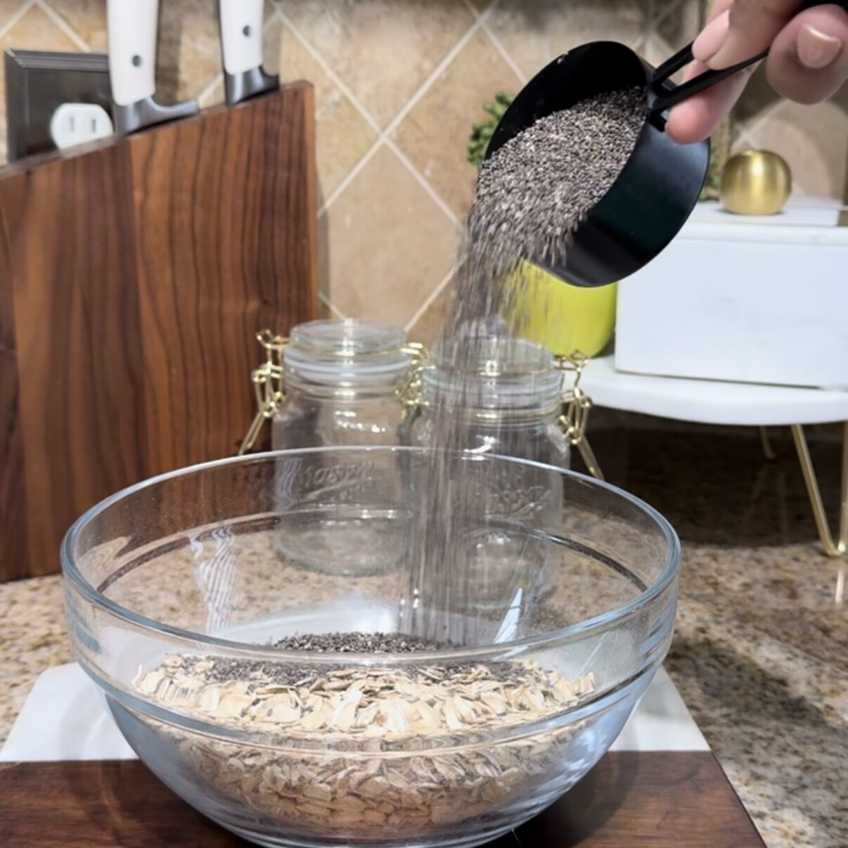1. Step 3: Mix oats, chia seeds, milk, vanilla yogurt, vanilla extract, and apple pie spice.