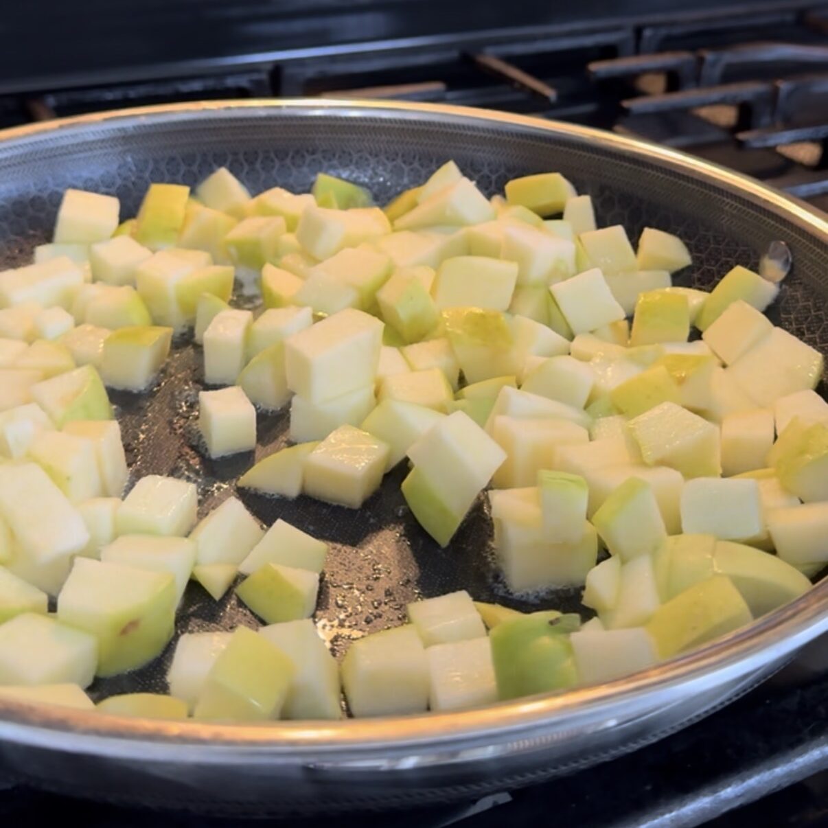 2. Cook for 5–7 minutes, stirring occasionally, until apples are soft and slightly caramelized.