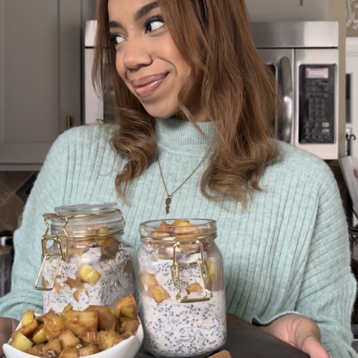 4. In a bowl, mix oats, chia seeds, milk, vanilla yogurt, vanilla extract, and apple pie spice. Stir until well combined.
