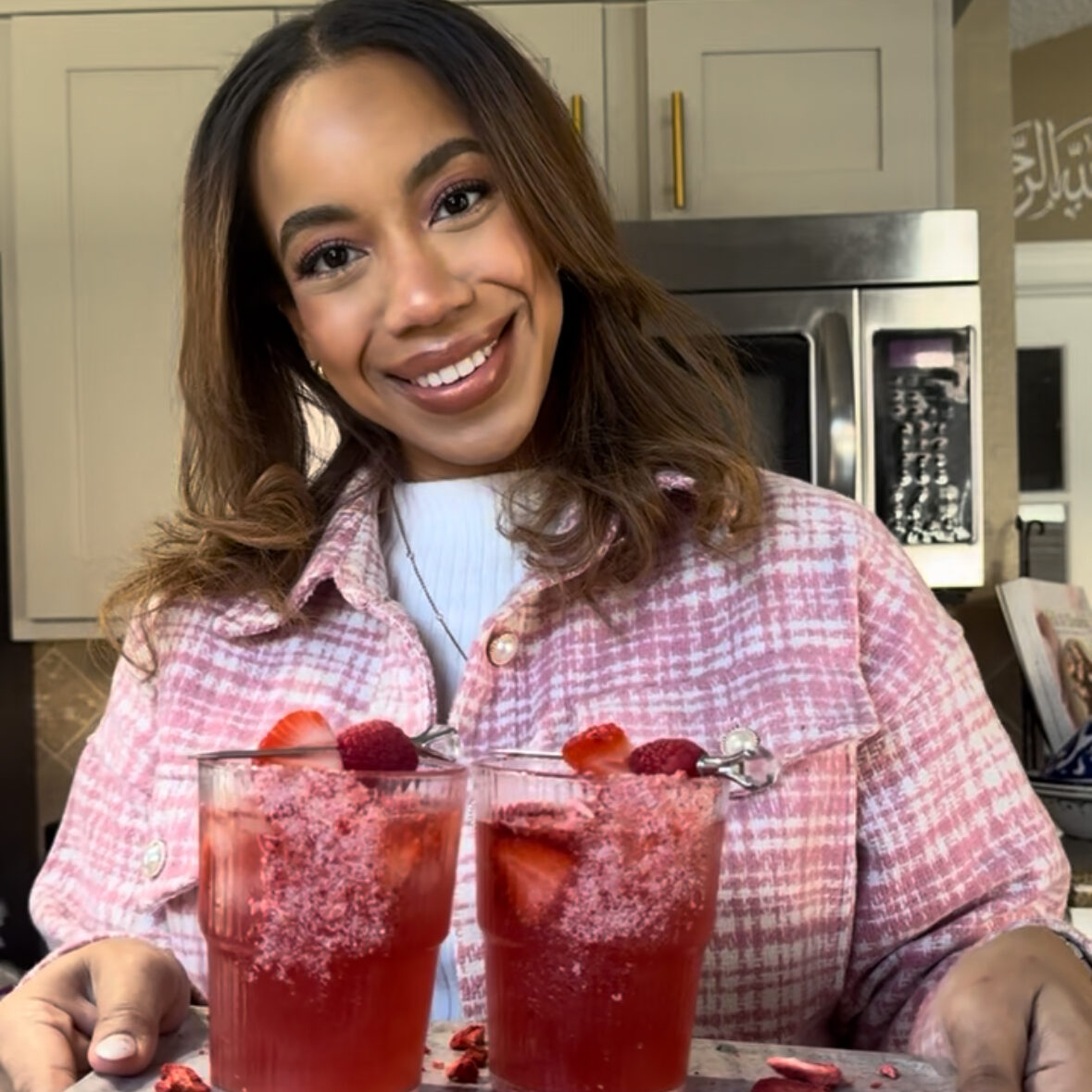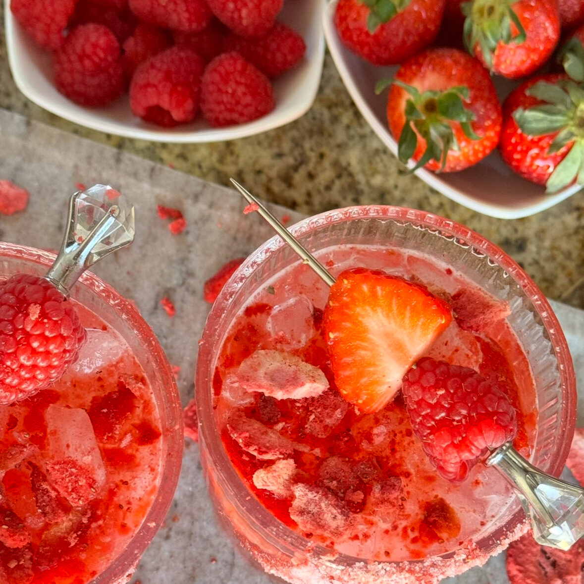 You can get the ingredients and the ribbed glasses for this recipe here: Freeze-dried strawberry - (https://amzn.to/467pXWt) & Ribbed Glasses- (https://amzn.to/4qH4qv9)