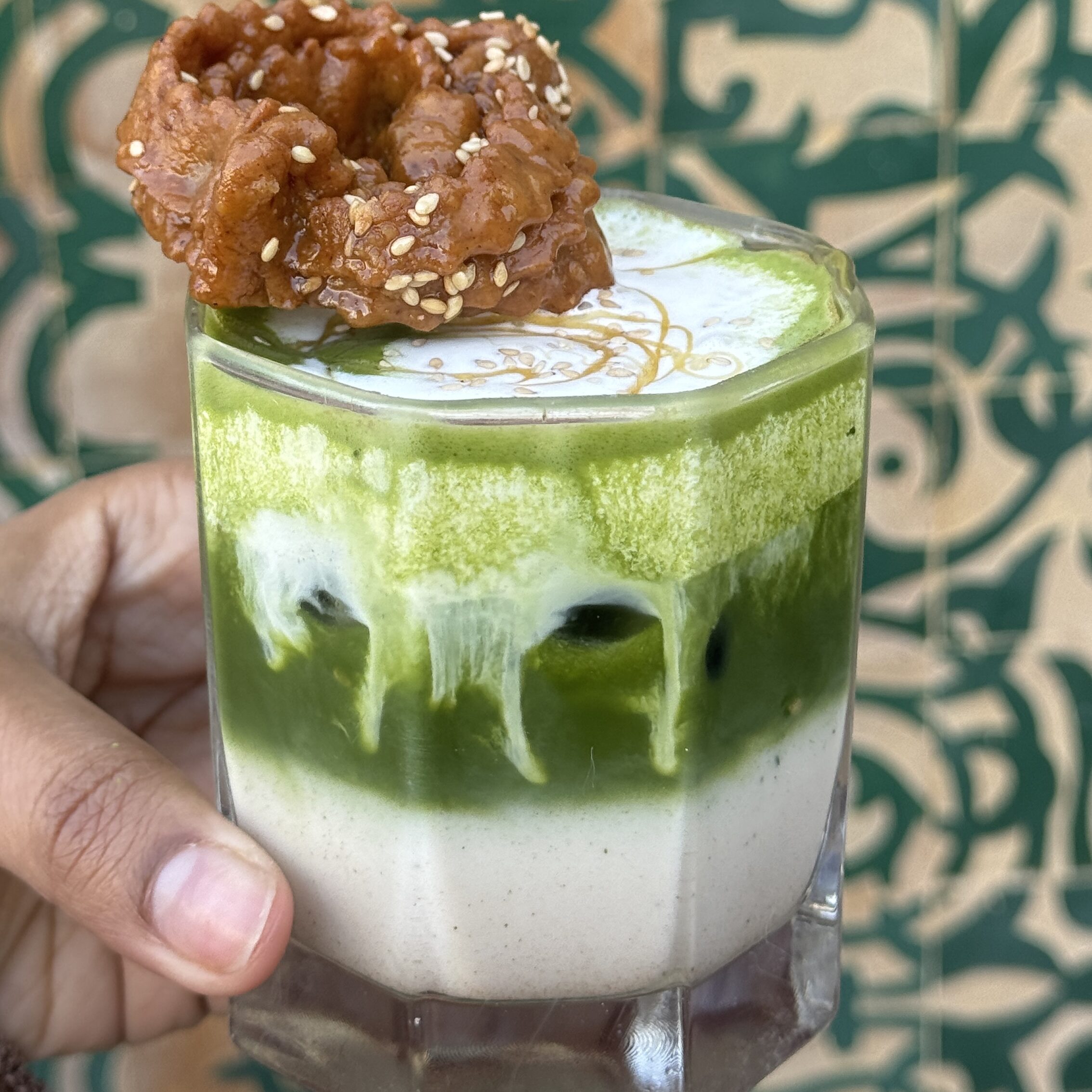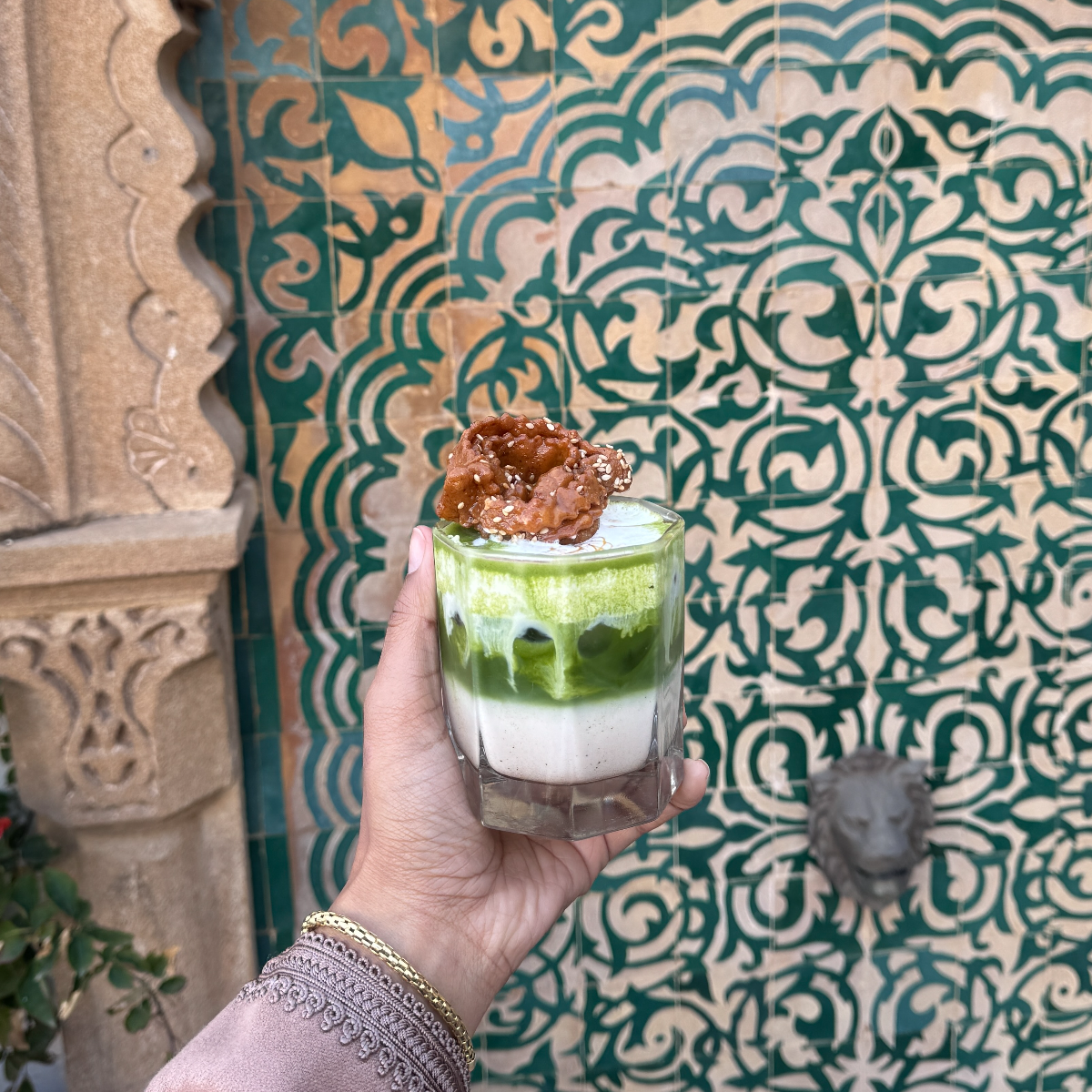 The sweetness of Chebakia pairs and balances with the flavor of matcha, and every sip makes you enjoy. Perfect for enjoying during the month of Ramadan and when the summer season comes.